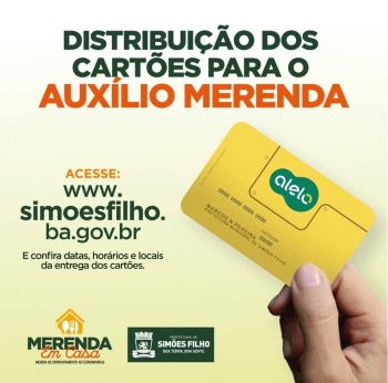 A Prefeitura iniciou nesta última quarta-feira (13), a entrega dos cartões do auxílio Merenda em Casa, benefício de R$50 aos alunos da rede pública municipal. As atividades de entrega seguirão até sábado (16), na unidade de ensino do aluno e o responsável deverá apresentar documento com foto para retirada.