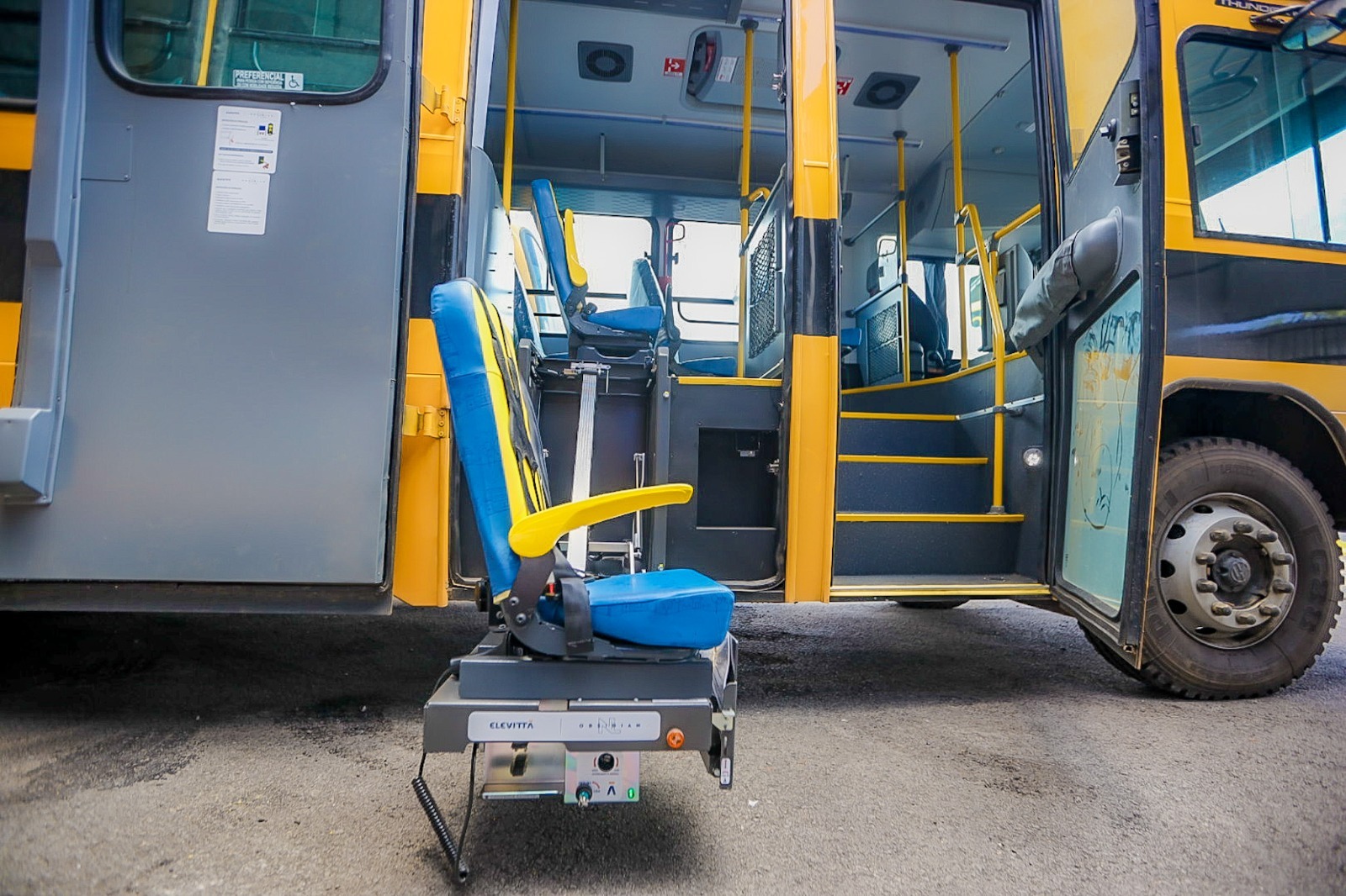 Sobre os veículosA aquisição realizada com recursos do município, garante aos estudantes da rede municipal de ensino, 15 novos ônibus, 0 KM, todos com acessibilidade para pessoas portadoras de deficiência, com a capacidade para transportar 59 estudantes. A nova frota somada aos que já realizam serviços no município, totaliza 39 escolares em circulação.