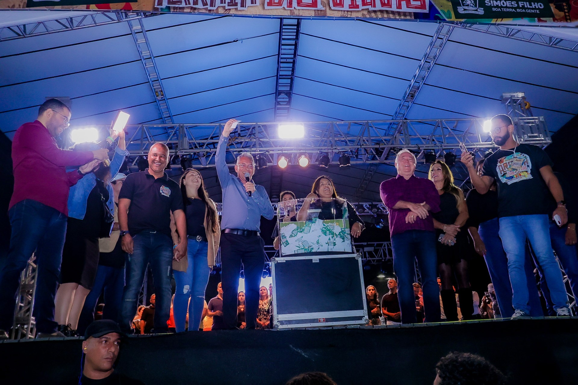 A Prefeitura de Simões Filho realizou neste sábado (1), o sorteio da Campanha ‘Arraiá de Prêmios’. A iniciativa foi coordenada pela Secretaria de Desenvolvimento Econômico e entre os prêmios sorteados estavam: uma moto, duas tv’s, um notebook e um smartphone.
