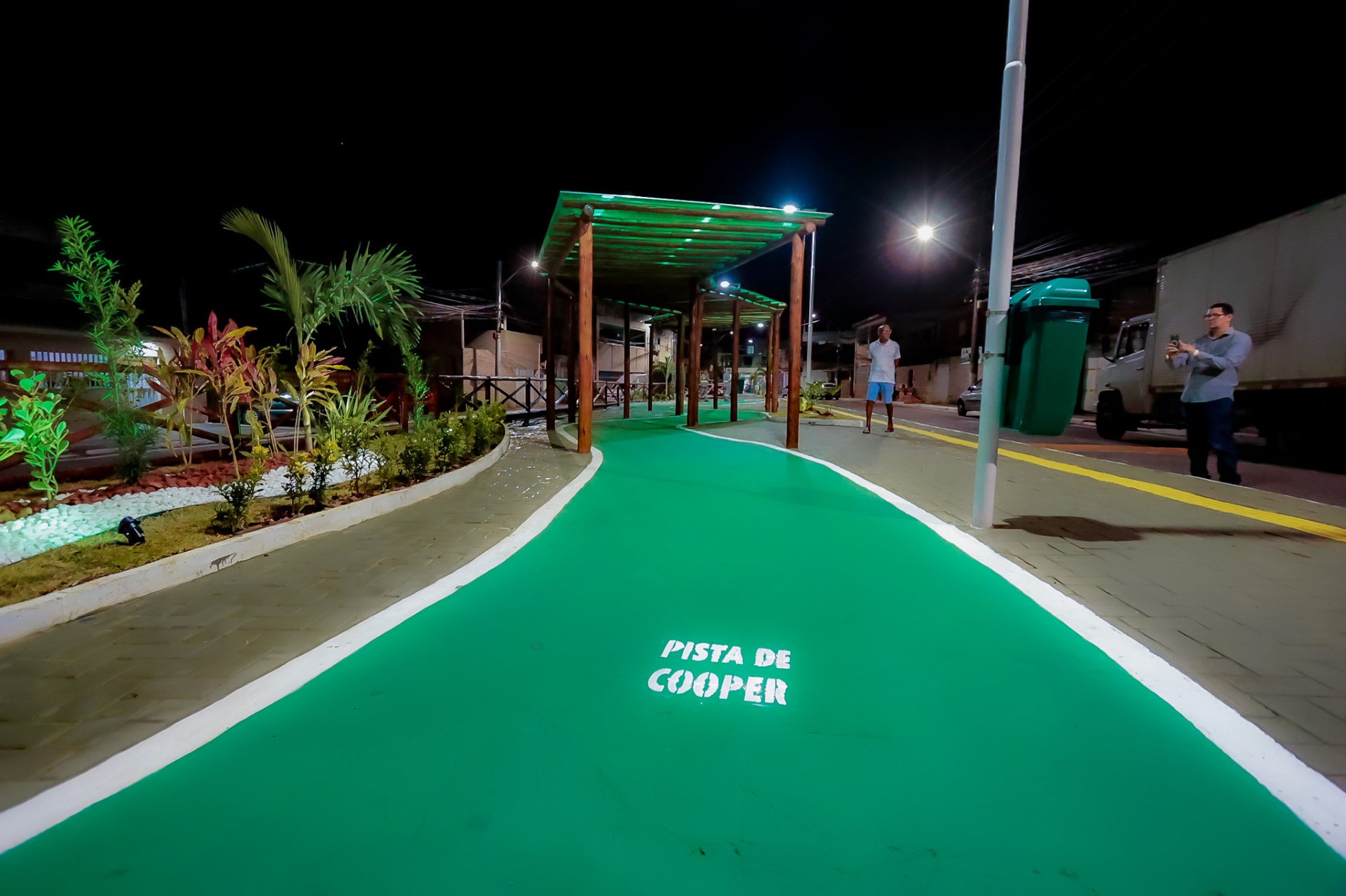 O novo equipamento recebeu piso intertravado, bancos, piso tátil e pista de cooper, calçadão, paisagismo, espaço kids, iluminação de led e espaço fitness com academia ao ar livre.