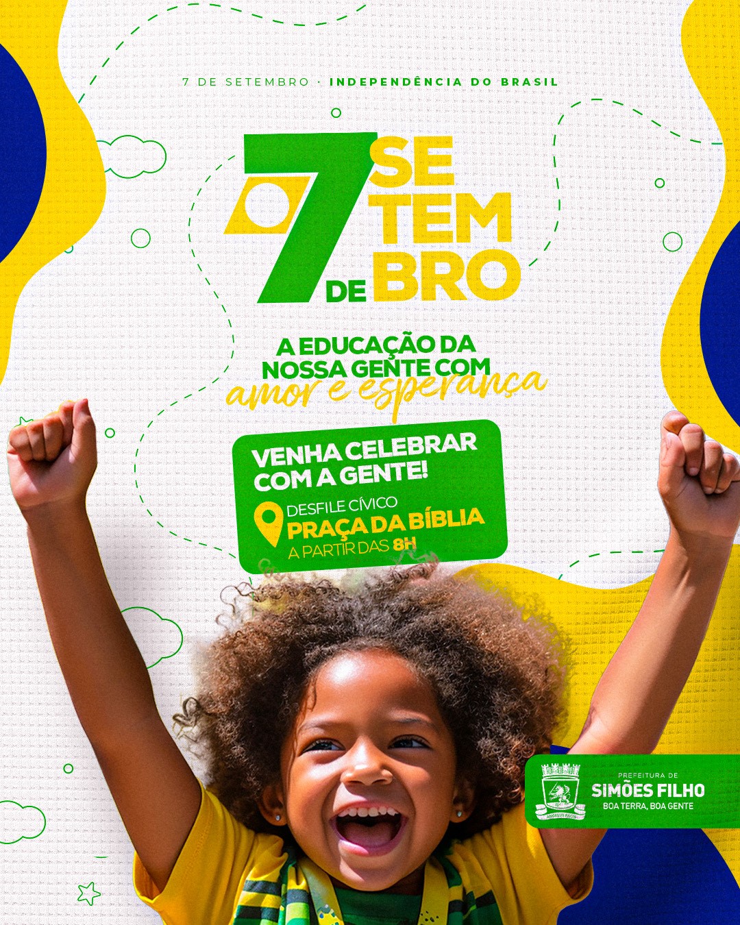 A cidade de Simões Filho, Região Metropolitana de Salvador (RMS), celebra na próxima quinta-feira (07), a independência do Brasil com o tradicional desfile cívico. A iniciativa é promovida pela Prefeitura, por meio da Secretaria da Educação (Semed), e terá como tema: “A Educação da Nossa Gente com amor eterno e esperança”.