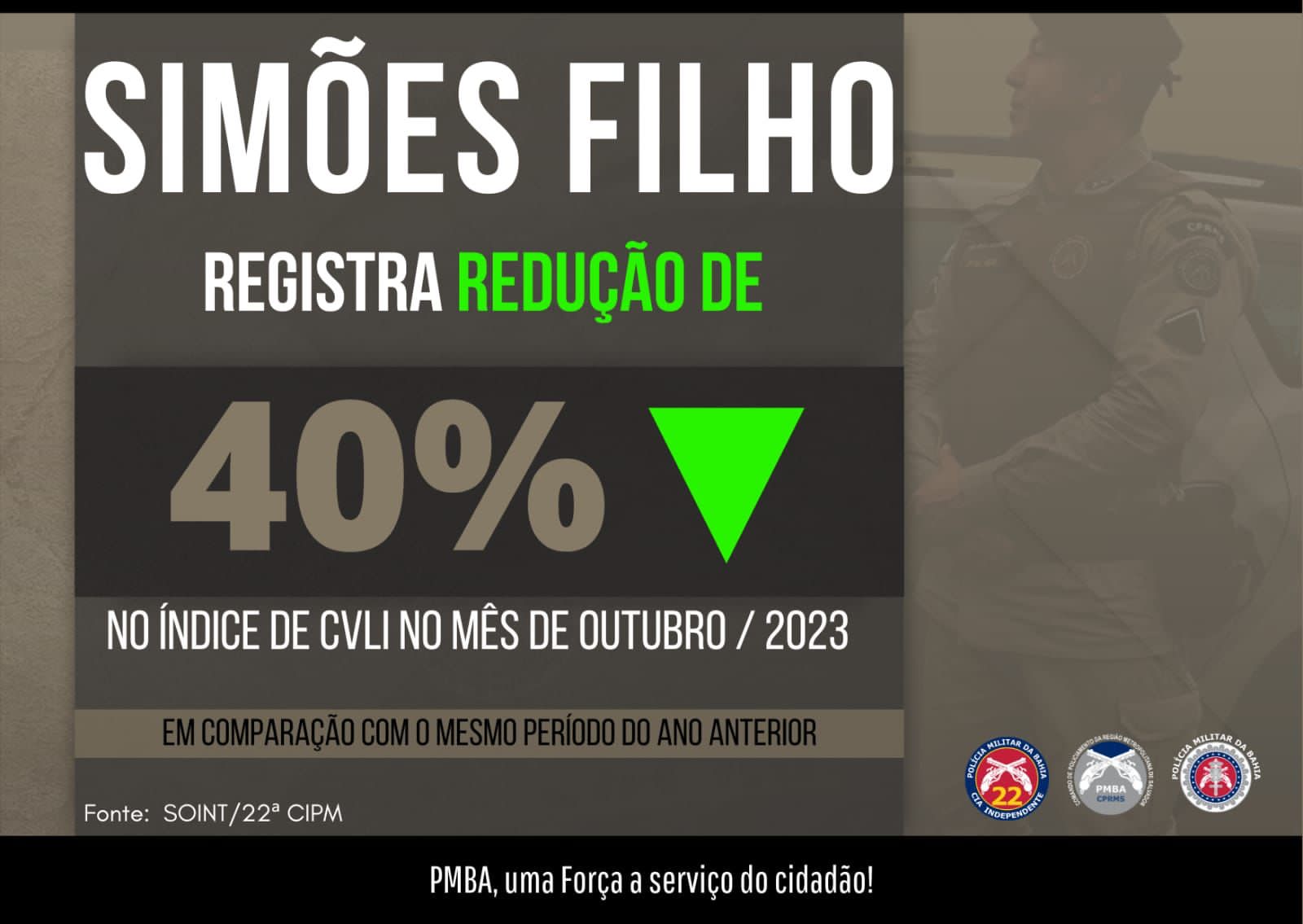 A cidade de Simões Filho, Região Metropolitana de Salvador (RMS), registra redução de 40% dos Crimes Violentos Letais Intencionais (CVLI). Os dados foram apresentados pelo Setor de Operações de Inteligência (Soint) da 22ª Companhia Independente da Polícia Militar (CIPM).