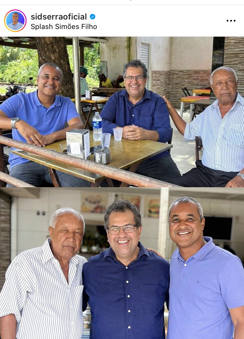 “Bate papo descontraído com o amigo @vereador_jacksonbomfim e Hélio Régis. Boas histórias sobre a política e a vida. Entre um assunto e outro, a certeza de que Simões Filho está no caminho certo, sob a liderança do nosso prefeito @diogenestolentinooficial e apoio da nossa deputada @katiaoliveiraba. E juntos, vamos continuar avançando cada vez mais. Pra cima”! Disse Sid Serra