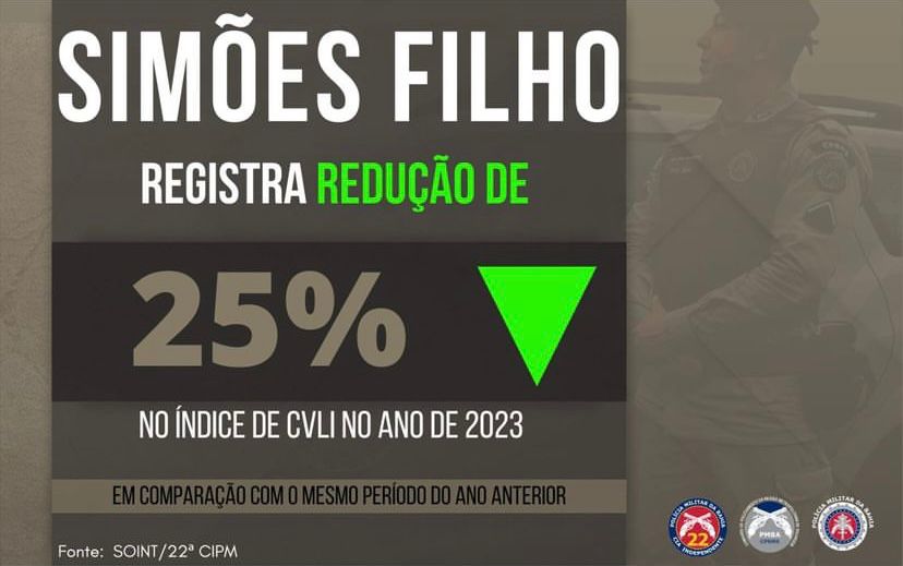 A cidade de Simões Filho, Região Metropolitana de Salvador (RMS), registra redução de 25% dos Crimes Violentos Letais Intencionais (CVLI), quando comparado ao ano de 2022. Os dados foram apresentados pelo Setor de Operações de Inteligência (Soint) da 22ª Companhia Independente da Polícia Militar (CIPM).