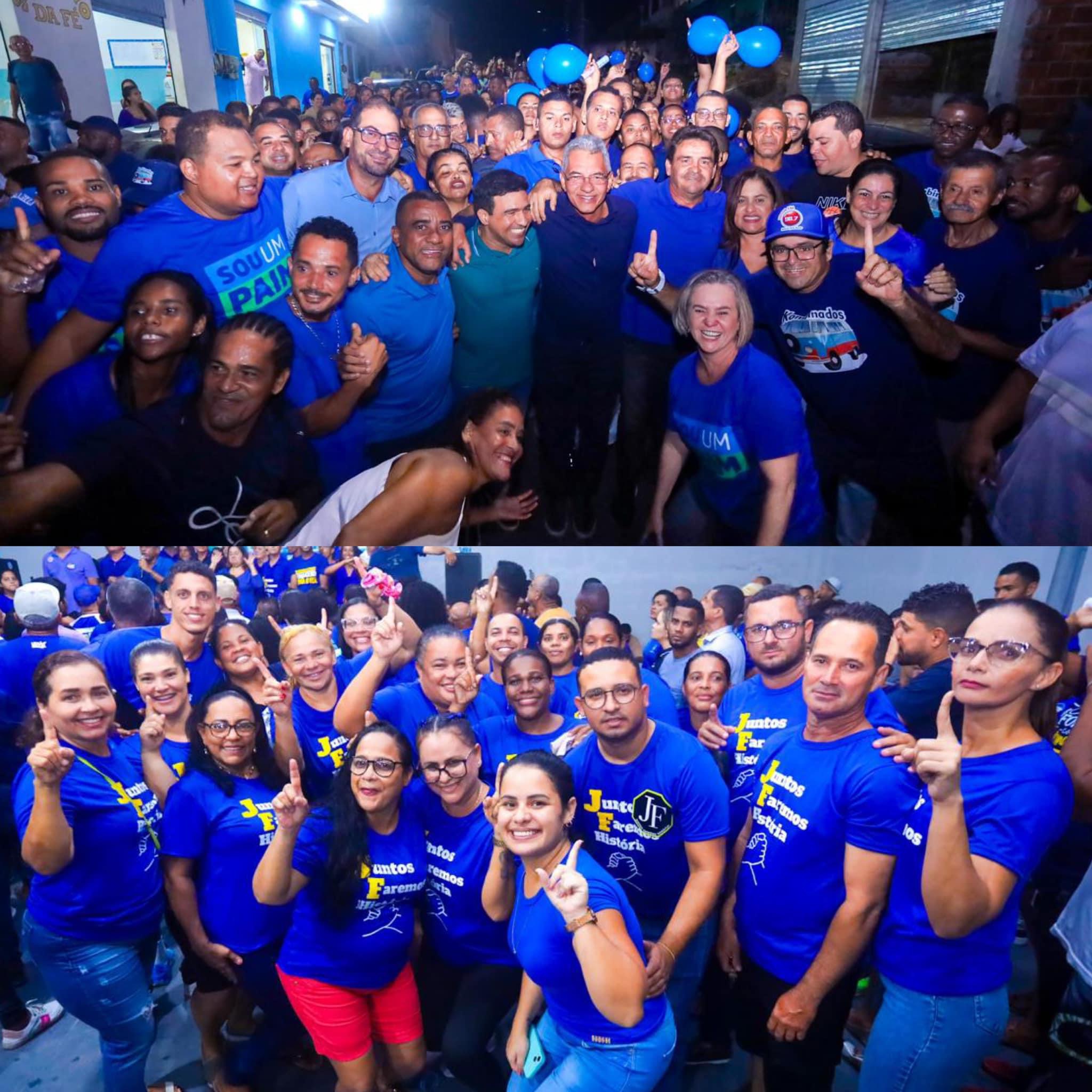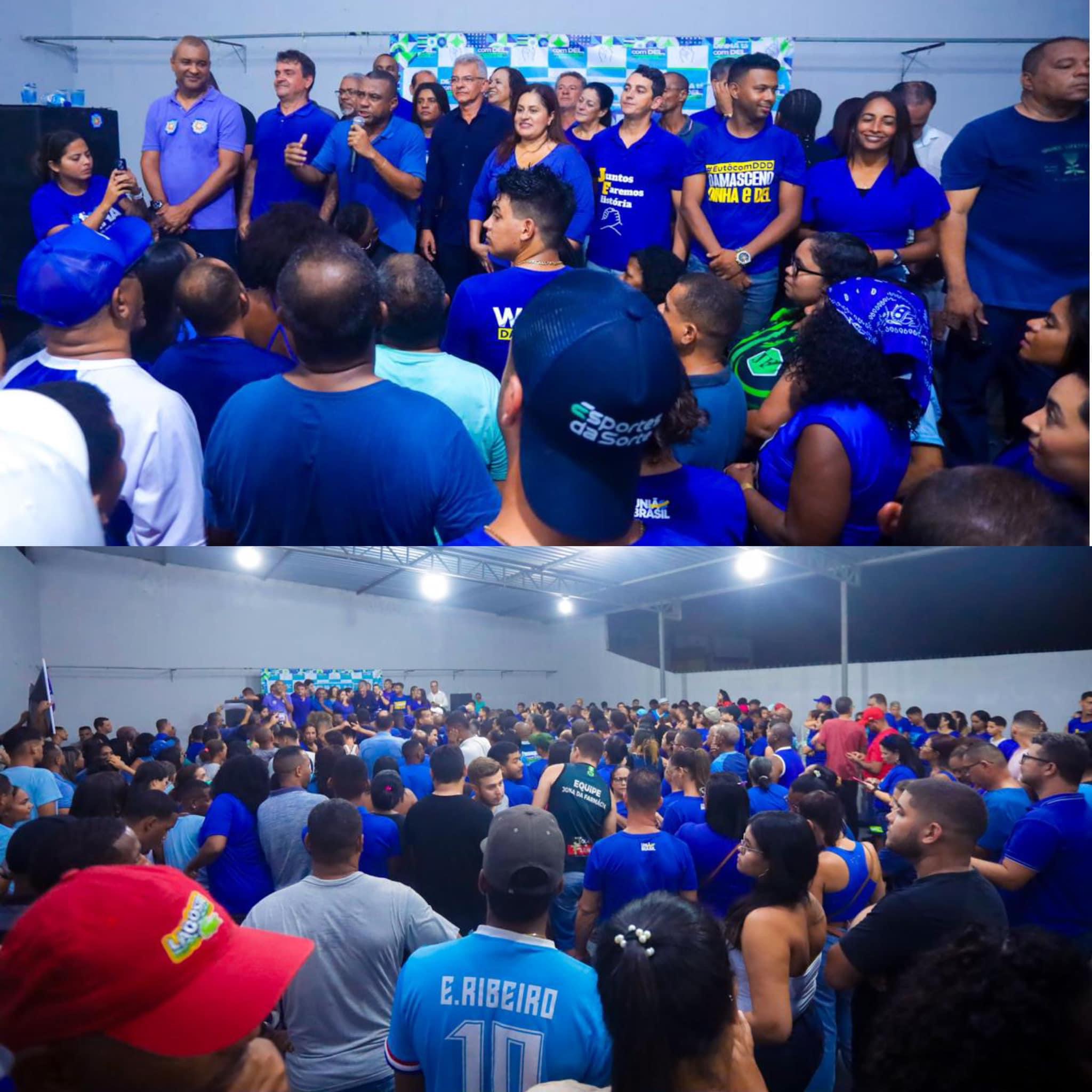 O pré-candidato a prefeito de Simões Filho, Del, ao lado do prefeito Dinha, da deputada Kátia Oliveira e diversas lideranças, foi recebido com muito entusiasmo pela população da Pitanguinha.