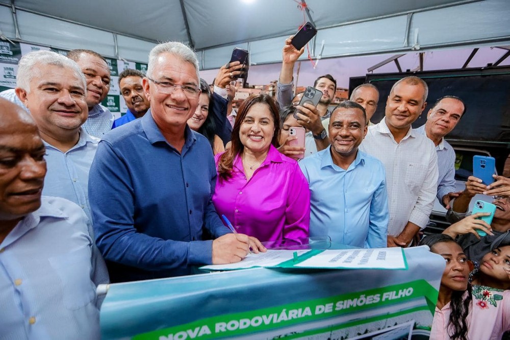 Na tarde desta segunda-feira (27), o Prefeito de Simões Filho, Diógenes Tolentino Oliveira, ao lado da Deputada Estadual, Kátia Oliveira (União Brasil) e do Presidente da Câmara, Del (União Brasil), assinou a Ordem de Serviço para construção da nova Rodoviária da cidade, localizada próximo ao posto da Polícia Rodoviária, na BR-324.