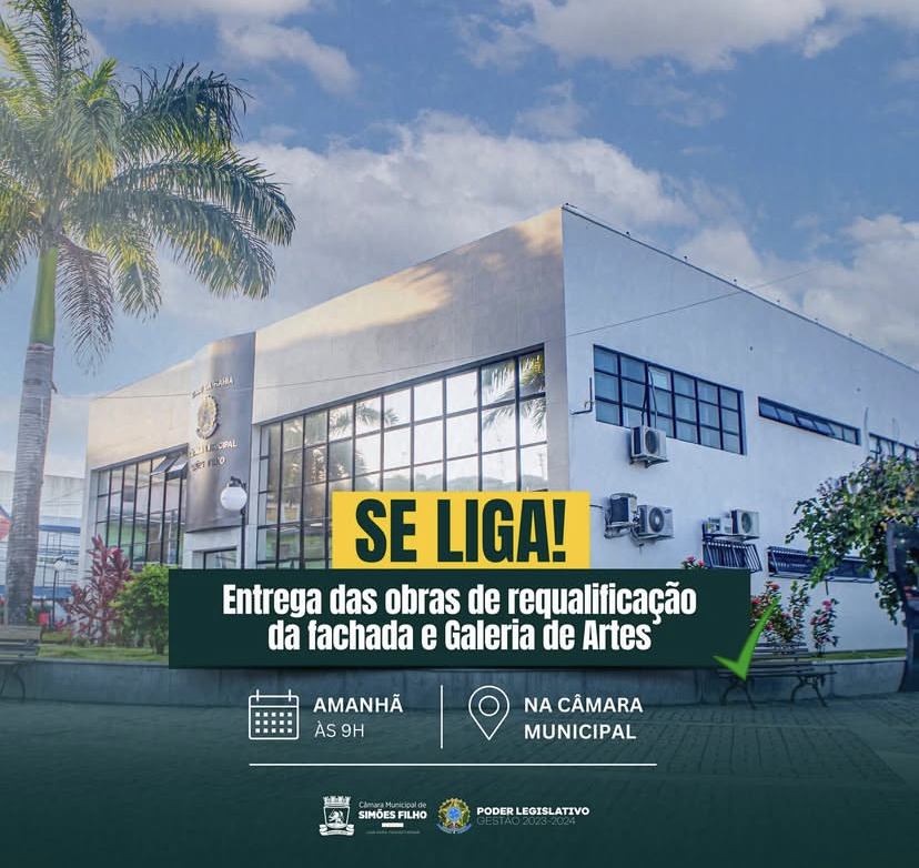 A Câmara Municipal de Simões Filho realiza nesta sexta-feira (20), às 9h, a entrega das obras de requalificação da fachada e da Galeria de Artes José Aleluia.