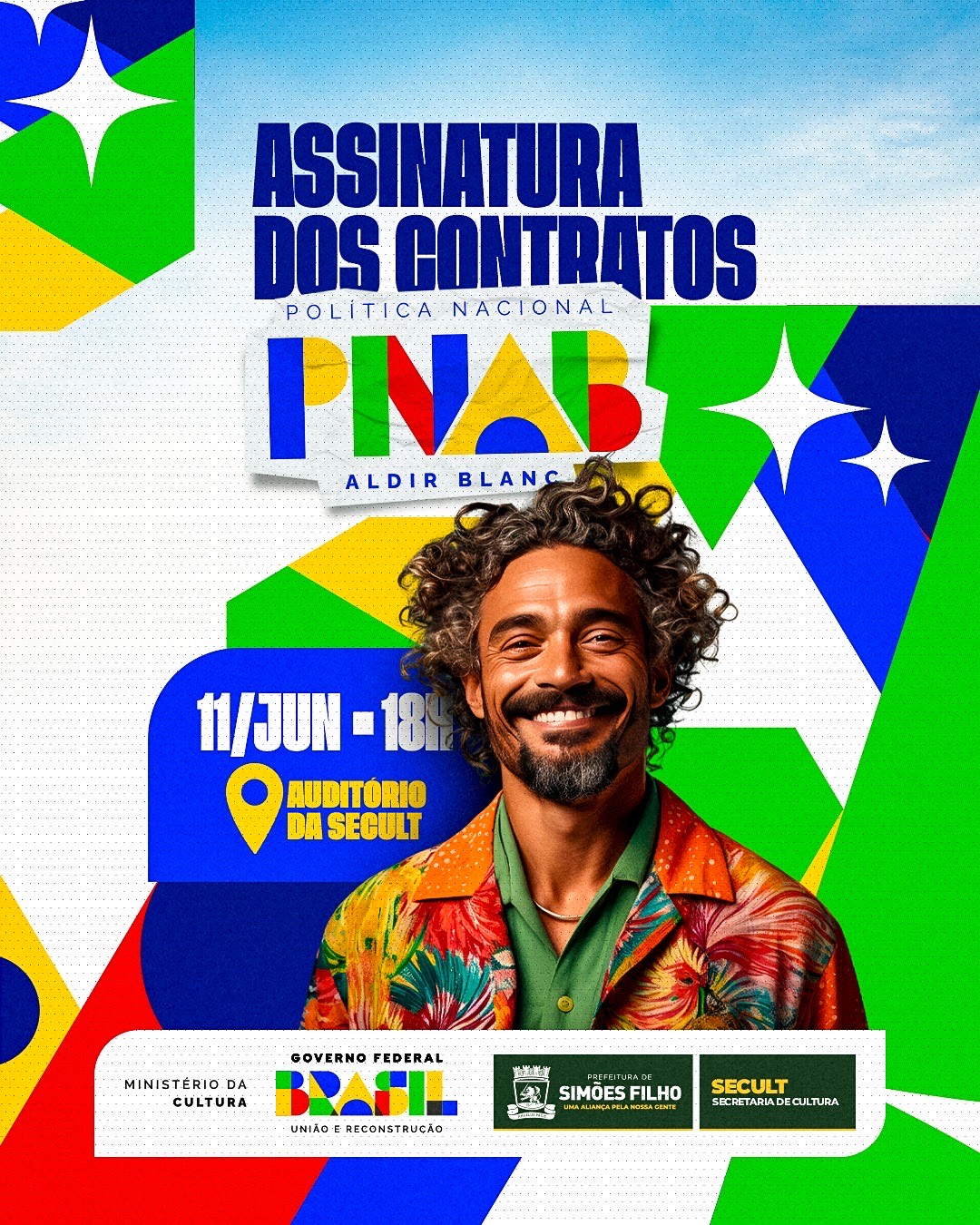 Reforçando o compromisso com o fortalecimento da cultura local, a Prefeitura de Simões Filho, por meio da Secretaria de Cultura (Secult), realiza nesta quarta-feira (11), às 18h, a cerimônia de assinatura dos Termos de Execução Cultural da Política Nacional Aldir Blanc (PNAB). O encontro acontece na Sede da Secult, no CIA 1, e reúne artistas, coletivos e fazedores de cultura do município.