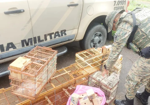 Durante uma fiscalização de rotina, a equipe avistou indivíduos em atitude suspeita. Ao perceberem a presença dos policiais, eles fugiram, abandonando diversas gaiolas com pássaros e algumas armadilhas. Um dos suspeitos foi localizado, detido e encaminhado à Polícia Civil para o registro da ocorrência.