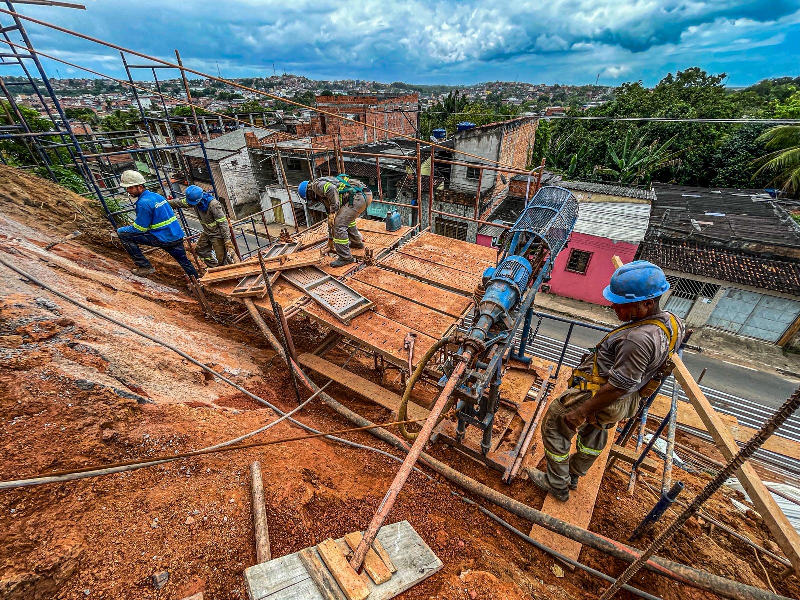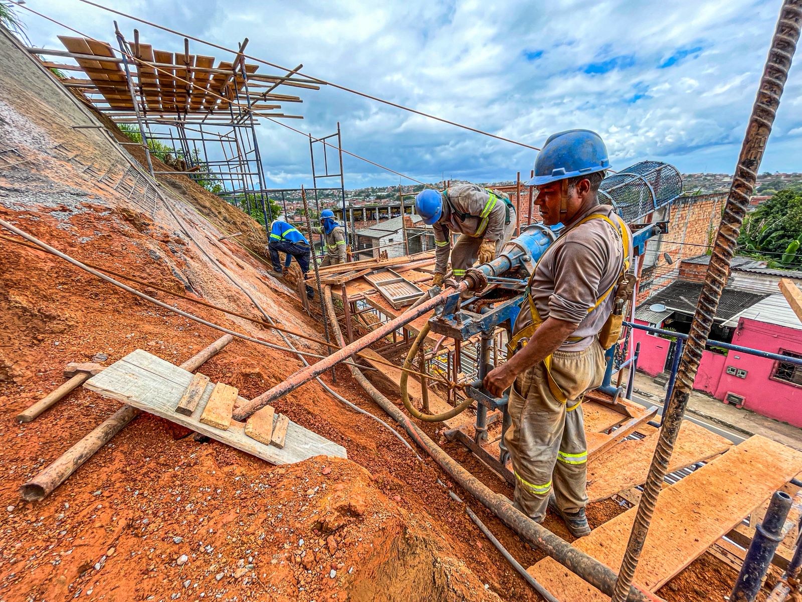 As intervenções contemplam a execução de serviços estruturantes que promovem a estabilidade da área, utilizando técnicas modernas, como o solo grampeado, método que aumenta a sustentação do terreno e reduz riscos de deslizamentos, proporcionando mais tranquilidade e segurança às famílias do entorno.