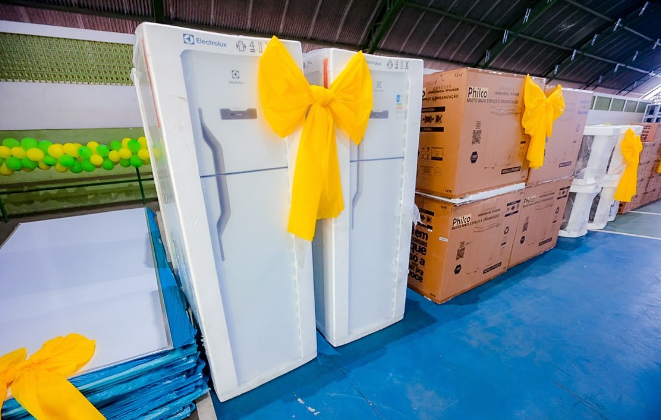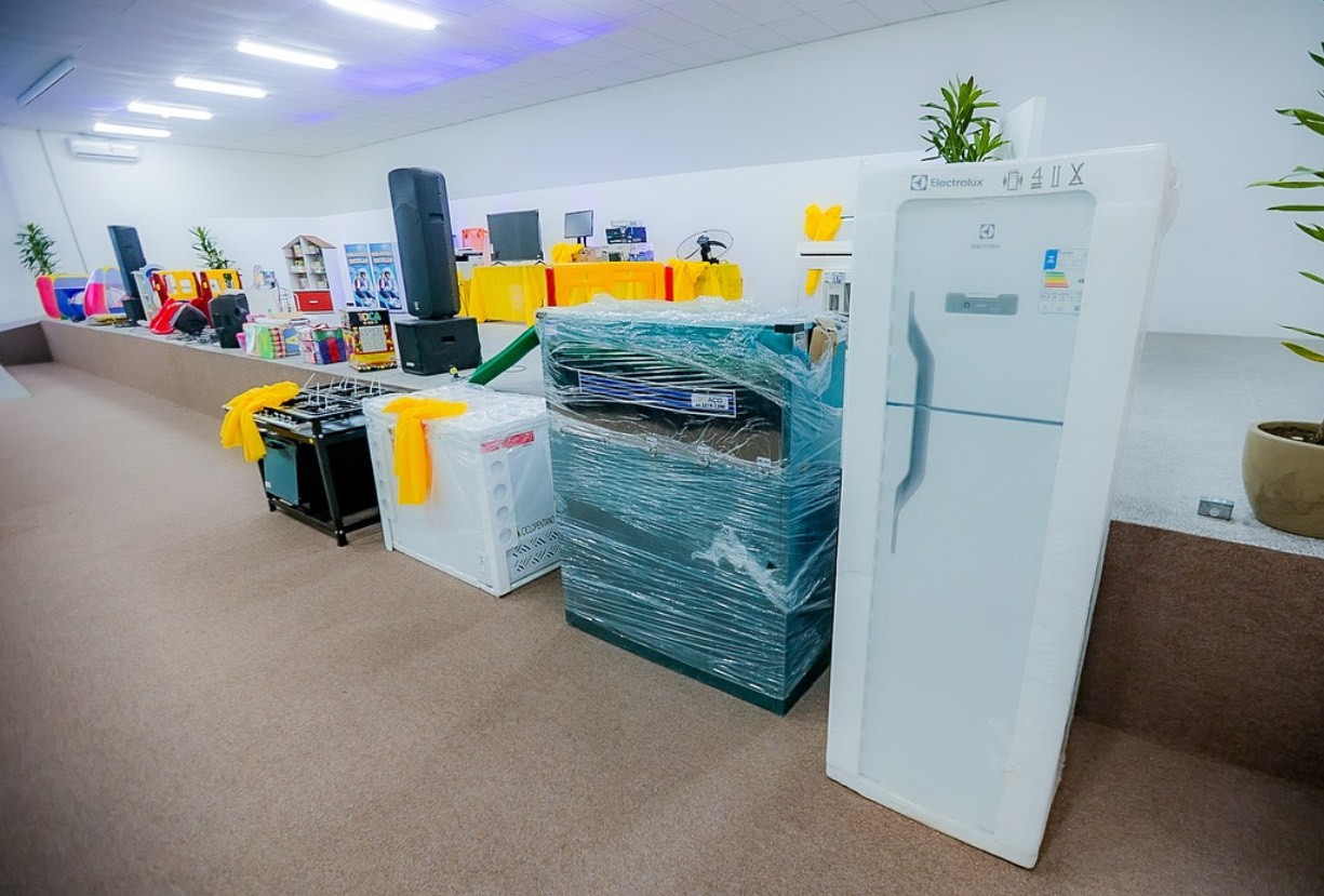Entre os itens entregues estão ar-condicionados, bebedouros, ventiladores, trenzinhos de leitura, micro-ondas, impressoras, computadores, freezers, livros, refrigeradores, televisores, fogões, brinquedotecas, datashows, liquidificadores, espremedores, prateleiras, entre outros equipamentos essenciais ao funcionamento e à modernização das escolas.
