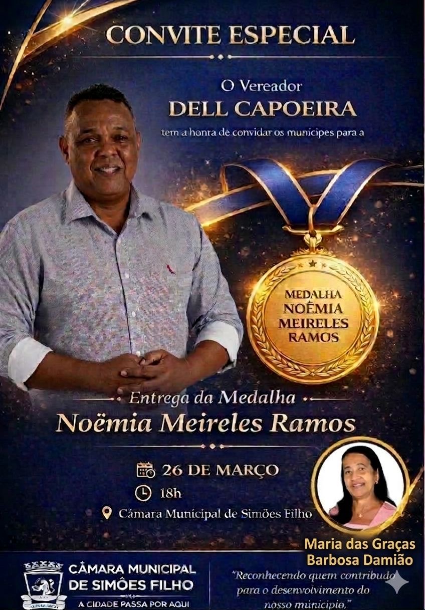 Na ocasião, será entregue a Medalha Noêmia Meireles Ramos à Maria das Graças Barbosa Damião, em reconhecimento à sua contribuição e dedicação ao município de Simões Filho.