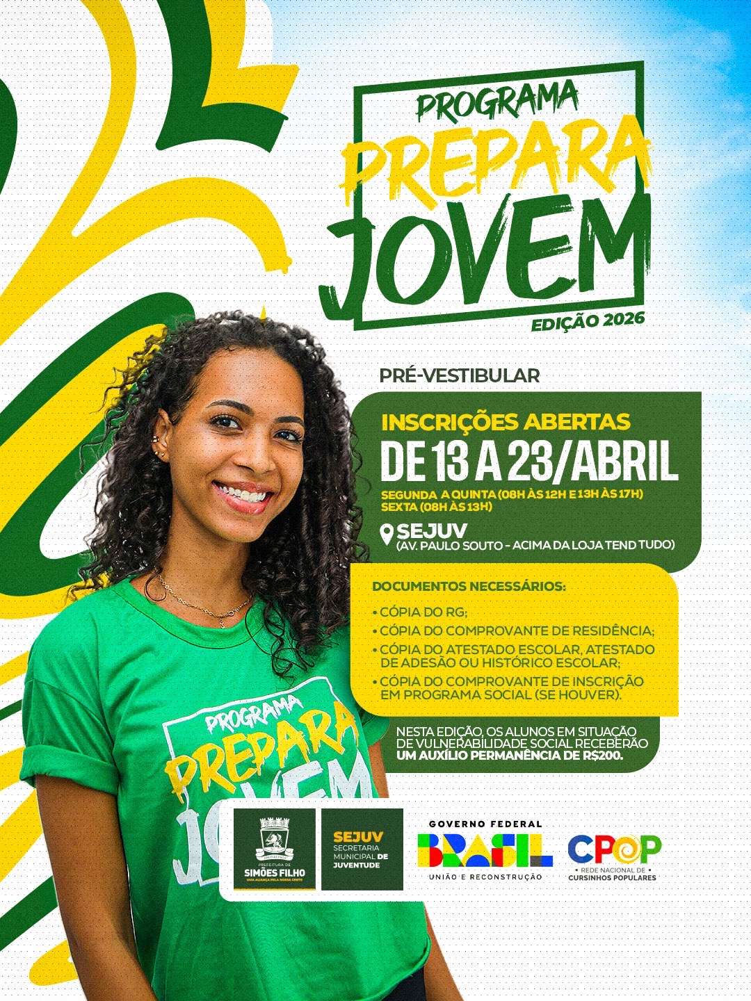 Coordenado pela Secretaria de Juventude (Sejuv), em parceria com a Secretaria de Educação (Semed) e a Secretaria de Desenvolvimento Social e Cidadania (Sedesc), o programa tem como objetivo preparar jovens simõesfilhenses para o ENEM, vestibulares e concursos. A iniciativa passa a contar também com o apoio do Ministério da Educação (MEC), fortalecendo ainda mais as ações desenvolvidas.